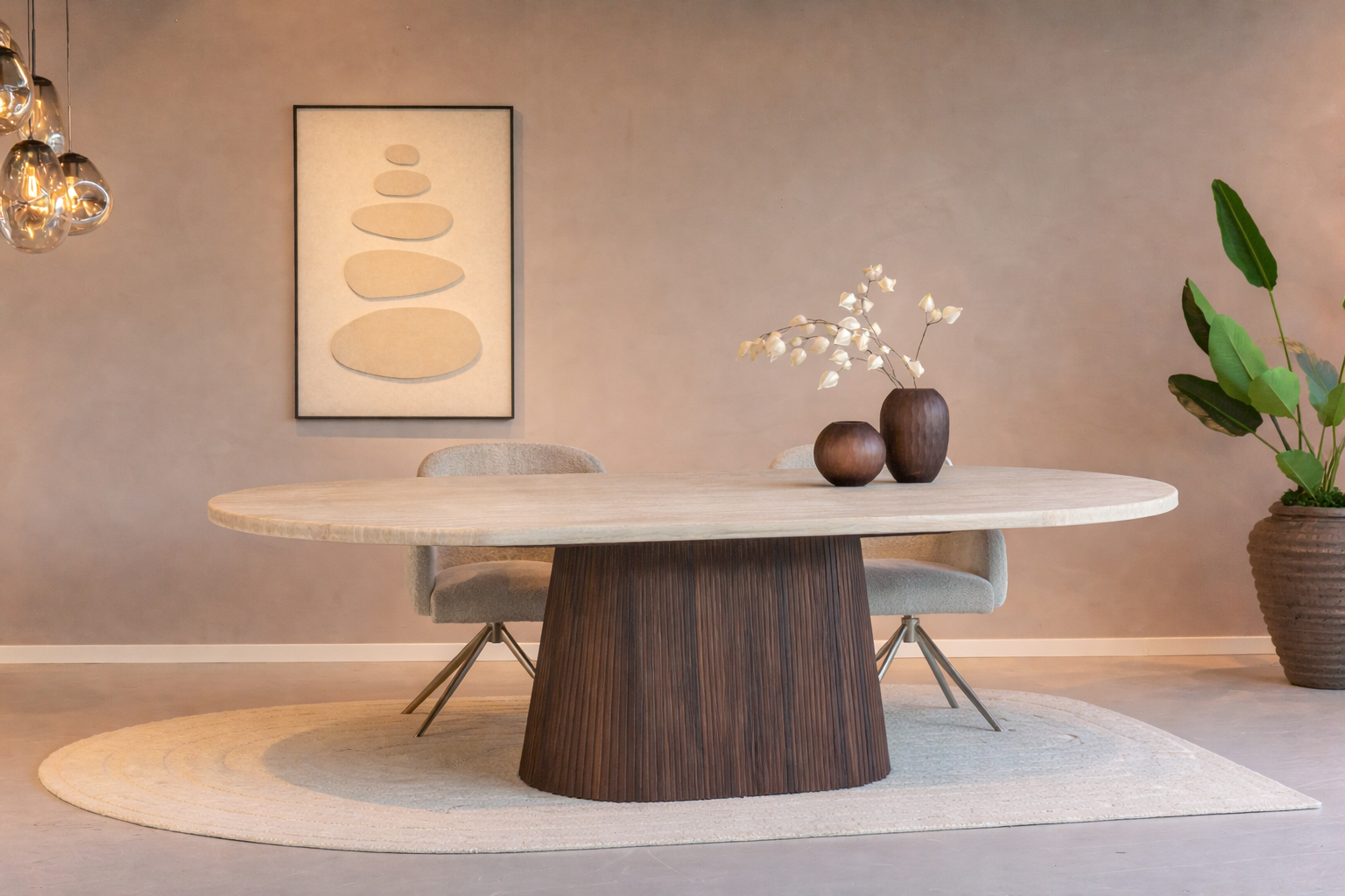 Eettafel Osaka 200 cm – Ovaal – Travertin Natuursteen