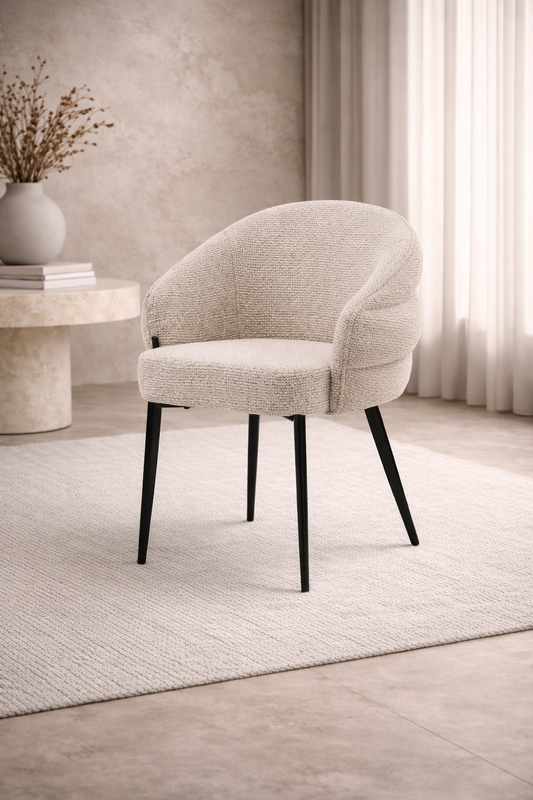 Eetkamerstoel Niko – Japandi Design – Crème Stof – Zwart Onderstel