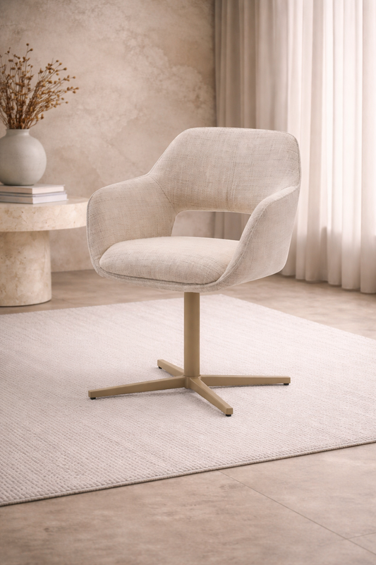 Eetkamerstoel Yuki – Japandi – Crème Stof – Beige Onderstel Draaibaar