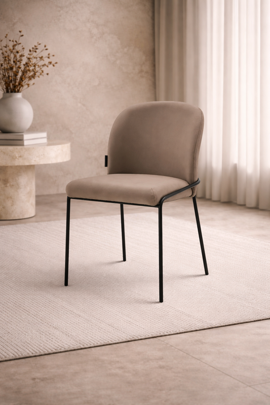 Eetkamerstoel Mio – Japandi – Taupe Velours – Zwart Onderstel