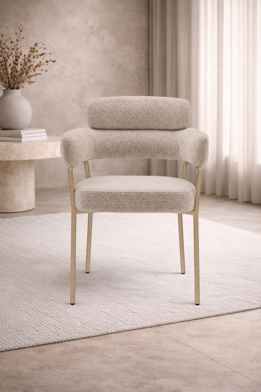 Eetkamerstoel Nori – Japandi – Beige Stof – Beige Onderstel