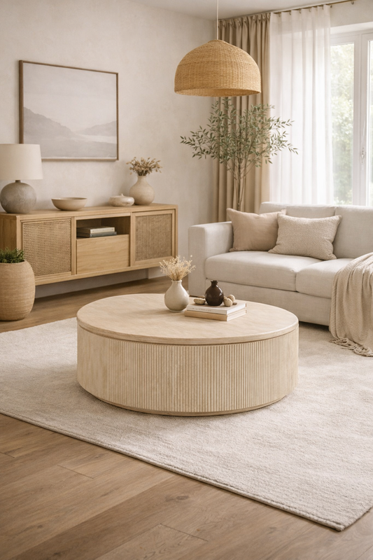 Salontafel Noa Ø100 cm – Japandi Travertin Natuursteen