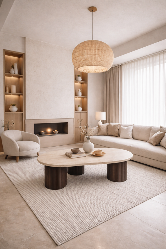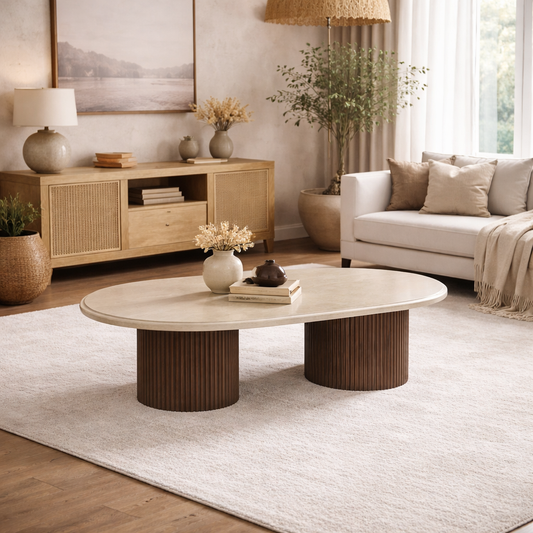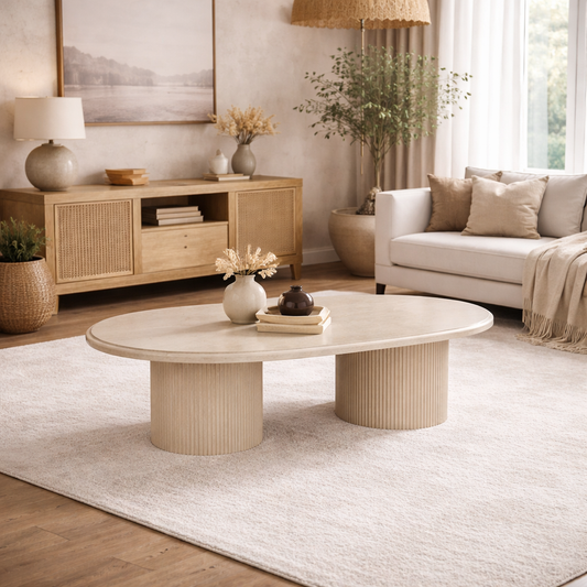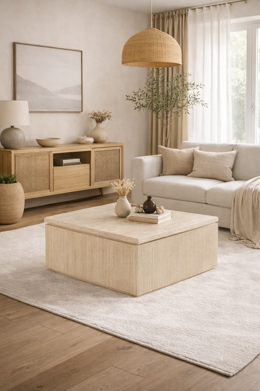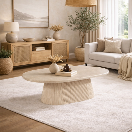 Salontafel Noa 140cm – Japandi Travertin Natuursteen